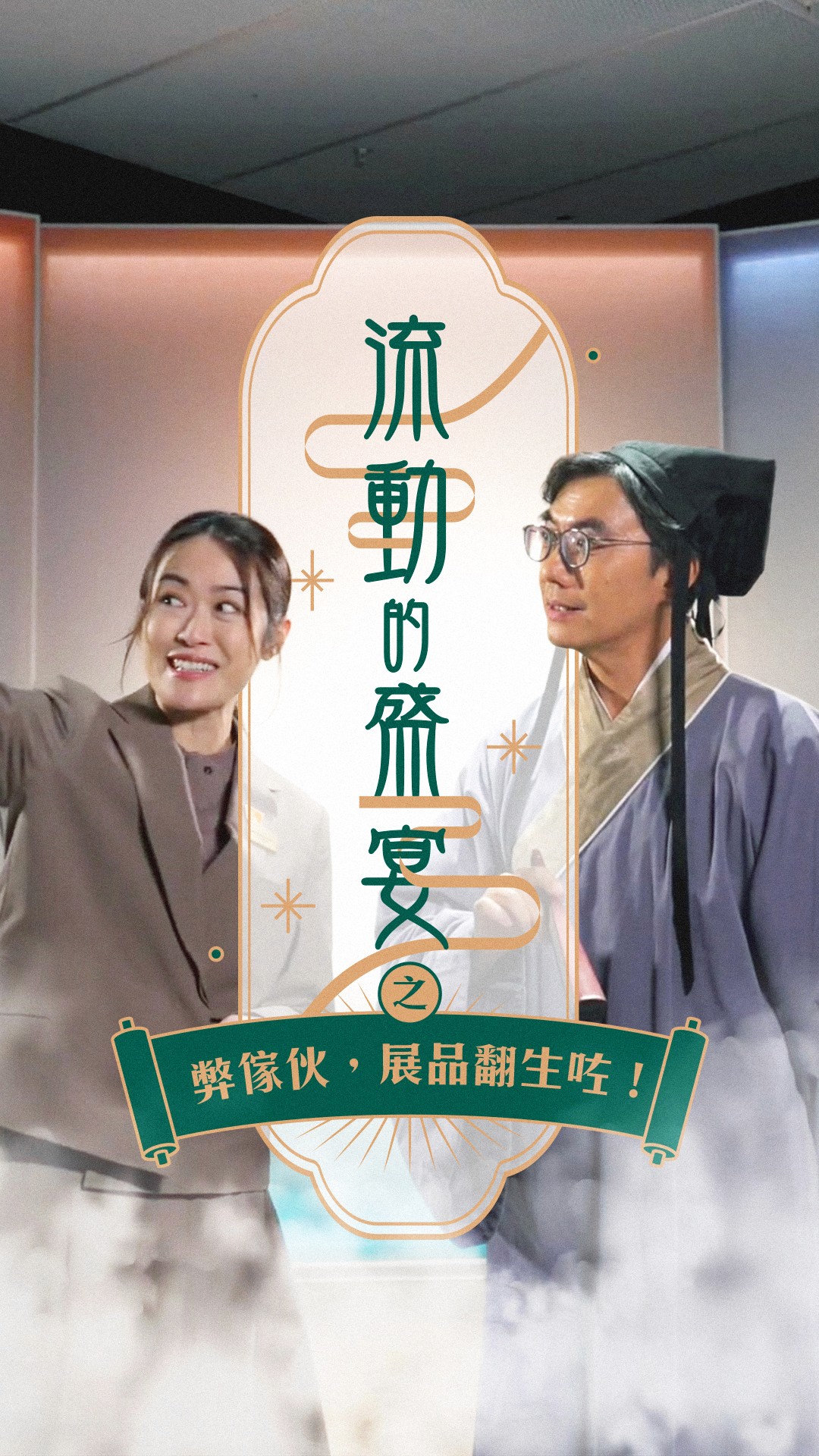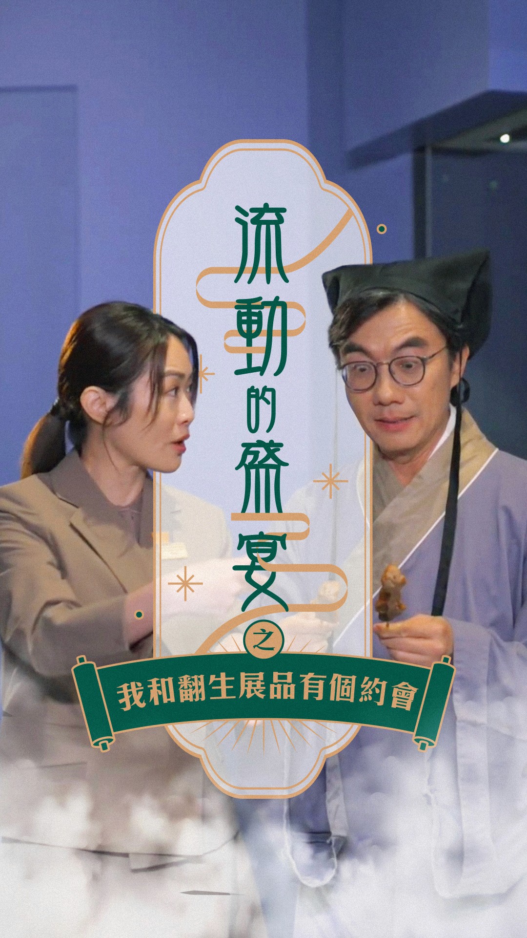 The short film is presented in a theatrical format, with Ben Sir portraying the role of the resurrected ancient person and the director of the Hong Kong Palace Museum taking on the role of the staff member (or customer service representative). Through their exchanges, the exhibits within the museum are introduced. In this project, I played a key role as both the graphic designer and stylist, contributing to the overall visual presentation and aesthetic.