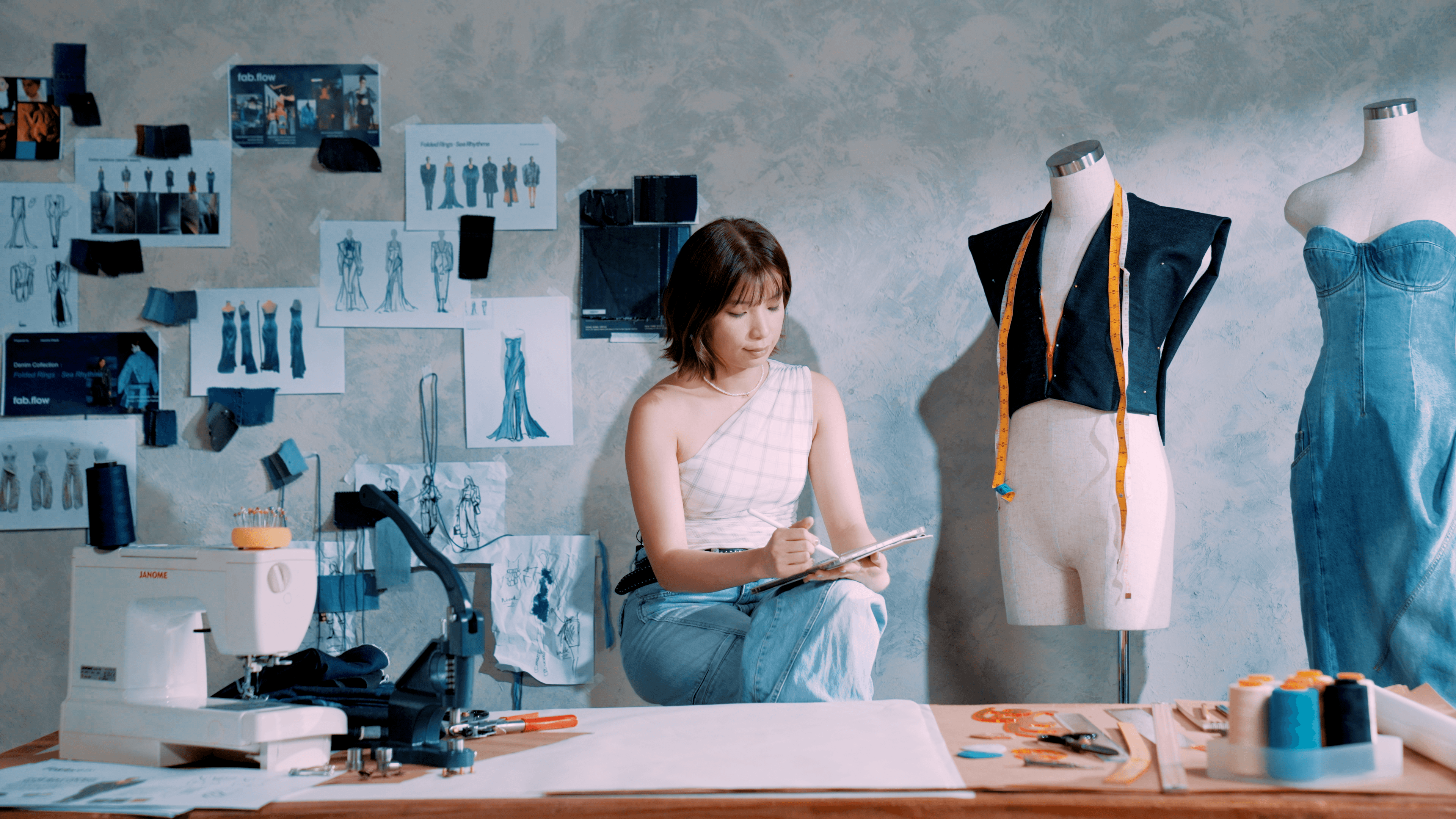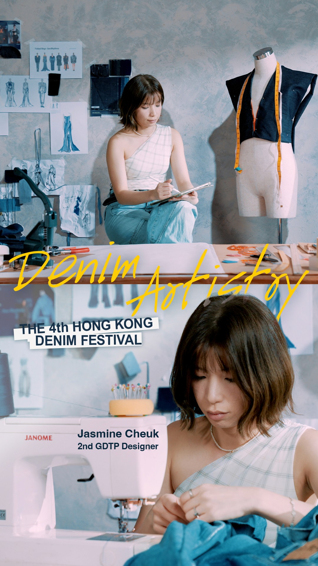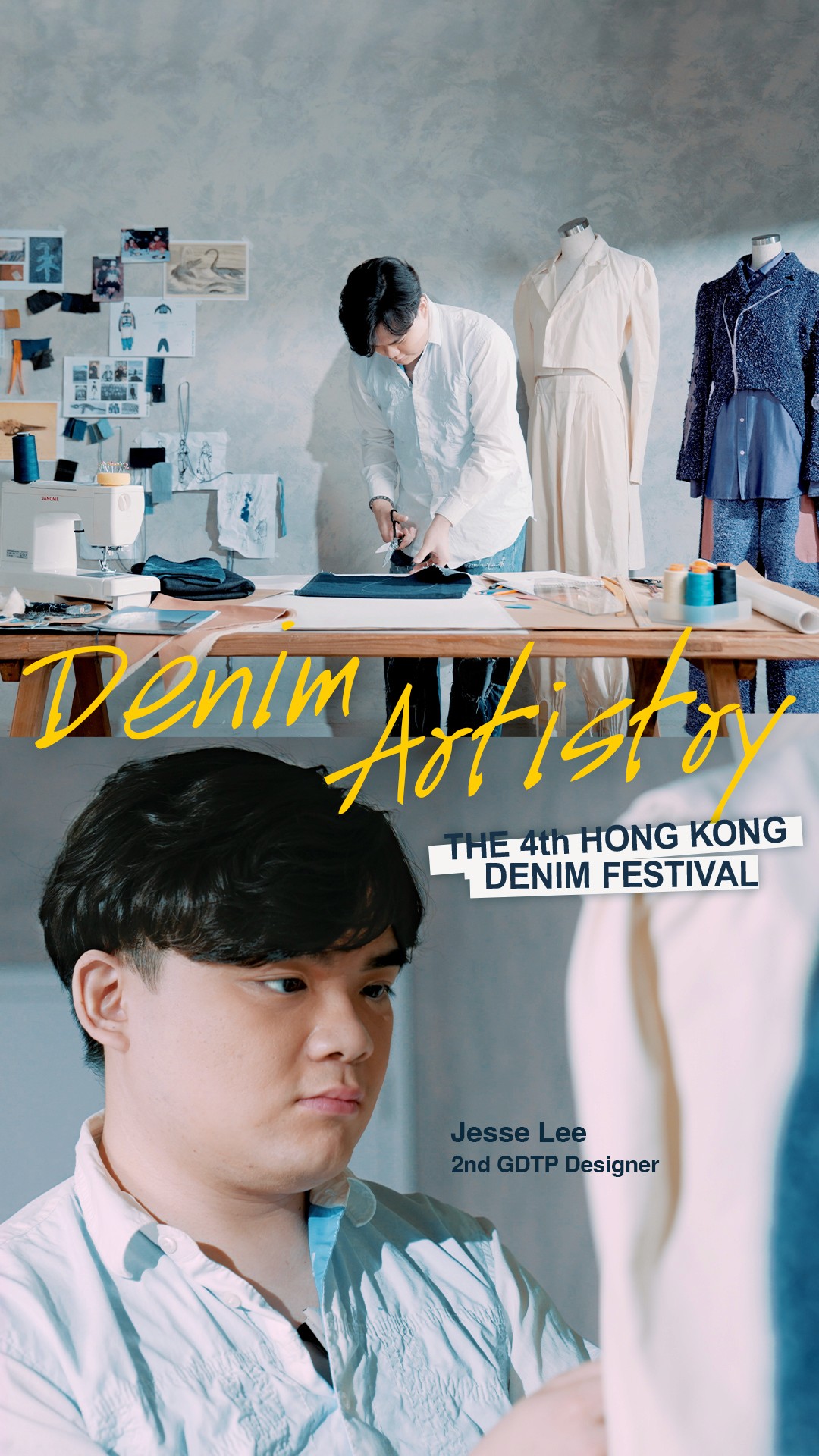 This project compiles interview segments with four emerging designers from the Global Denim Talents Programme, offering an in‑depth look at contemporary practice in denim design. Through studio footage and runway excerpts, the video examines material innovation, sustainable processes, and creative narratives: laser‑printed, wear‑evolving motifs in Jesse Lee’s Blue Fossil Record; reversible constructions and eco‑friendly textiles in Jason Lee’s YMDH that bridge formal and casual dress; Jasmine Cheuk’s Folded Rings. Sea Rhythms, which marries pleating and curved silhouettes with recycled denim and low‑impact laser techniques, and Max Tsang’s CLAYMORE, exploring tech‑military functionality within a post‑urban narrative. Complemented by designer reflections on craftsmanship and market strategy, the film highlights the programme’s role—supported by the Cultural and Creative Industries Development Agency (CCIDA)—in facilitating technical experimentation, sustainable practice and international exposure. The presentation positions these projects as exemplars of how denim can be reinterpreted to meet contemporary aesthetic, environmental, and commercial demands.